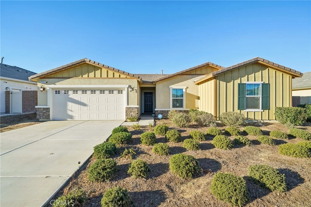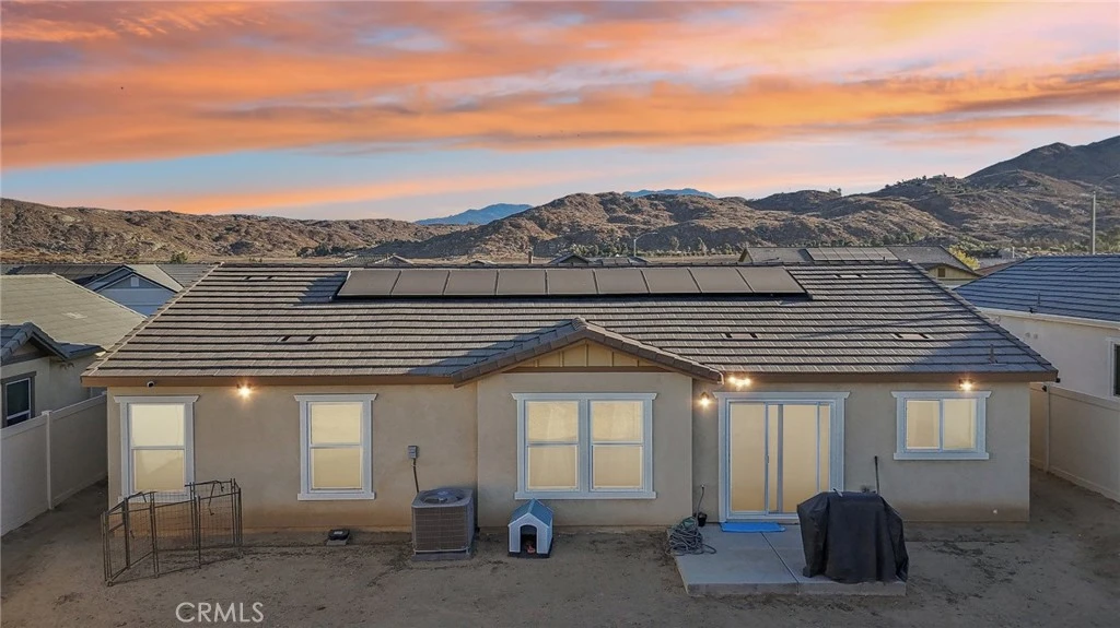 Experience the comfortable, laid-back living you want in this delightful 3-bedroom, 2-bath single-story home in a beautiful Hemet neighborhood! Past the foyer, continue to the open-concept main gathering areas filled with natural light, illuminating a crisp white palette, textured tiles, and plush carpeting underfoot. Glass sliders off the dining alcove beckon you to enjoy scenic alfresco celebrations. Steps away, the bright kitchen makes cooking a breeze with its stainless steel appliances, abundant cabinetry, and granite countertops that extend to the eat-at island. Three well-sized private quarters accommodate you and overnight guests, two of which share a tiled bath. Outshining the others, the primary retreat features a large walk-in closet and a refreshing ensuite with a separate shower and soaking tub. Outside, a versatile fenced-in yard presents plenty of potential for fun and leisure activities. Additionally, there’s a laundry room, an attached 2-car garage, and solar panels for energy efficiency. Notable perks include access to incredible community amenities like the pool, recreational areas, and picnic parks, full gym in the club house. Come for a tour while this great opportunity is still available!