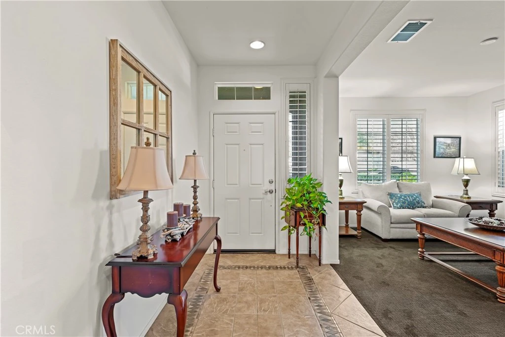 Welcome to resort-style living in the highly sought-after, gated 55+ Four Seasons Hemet community. This beautifully maintained single-story home is located on a quiet, well-kept street and offers comfort, functionality, and low-maintenance living. Interior Features: • 2 spacious bedrooms, 2 full baths, plus two versatile office/den spaces • Private primary suite with walk-in closet • Ensuite bath with soaking tub, separate shower, dual vanities, and private commode • Bright, open living areas; tile flooring with carpet in living and dining, bedrooms and offices • Plantation shutters and ceiling fans throughout • Kitchen with wood cabinetry and newer appliances Outdoor & Garage: • Peaceful backyard with Alumawood solid patio cover, planter beds, golf course & mountain views • Automated sprinkler system front and back • Garage with epoxy flooring, built-in cabinetry, and overhead storage Community Amenities: 24-hour security, clubhouse with Bistro, ballroom, theatre, library, billiards, game room, fitness center, salon, resort-style pool and spa, covered BBQ area, bocce ball, shuffleboard, tennis and pickleball courts. Location: Conveniently located near Diamond Valley Lake, Temecula Wine Country, Palm Springs, San Diego, and Los Angeles. Turnkey and move-in ready—come experience the exceptional Four Seasons lifestyle. Schedule your private showing today.