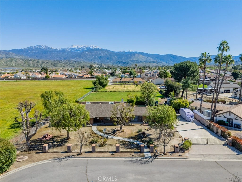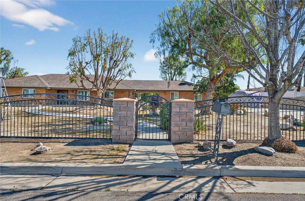Sprawling ranch style home on over an acre in East Hemet offering space, privacy, and beautiful mountain views. This four-bedroom, three-bathroom home has been tastefully renovated and truly shows pride of ownership throughout. Adding to the bonuses, the owners have engineered hardwood flooring throughout. The heart of the home is the impressive kitchen that flows easily into the main living room where a cozy fireplace creates a warm and inviting space to gather. Large windows allow natural light to pour in while giving you views of the surrounding property and mountains beyond. The primary bedroom is spacious while creating a calm and comfortable retreat within the home. It features a large walk-in closet with plenty of room for storage and organization. The renovated primary bathroom has been tastefully updated and offers a clean, modern feel while still remaining warm and inviting. With great lighting and a thoughtful layout, this space feels bright, open, and relaxing. Outside the property also shines. The backyard features a covered patio that is perfect for relaxing or entertaining, along with a pool, garden area, and open space to enjoy the peaceful setting. Whether you enjoy hosting friends or simply unwinding at the end of the day, this outdoor space offers endless possibilities and the most incredible views of the mountains. A charming courtyard connects the main house to the garage, adding character while also creating a private and functional layout. The entire property is fully fenced and gated, providing excellent privacy and security. For those who need space for toys, trailers, or recreational vehicles, this property delivers with a ton of RV parking and room to spare. Opportunities like this are rare in Hemet. A beautifully updated ranch home on over an acre with views, privacy, and usable land at an incredible value. This is truly a unique find and one you will not want to miss.