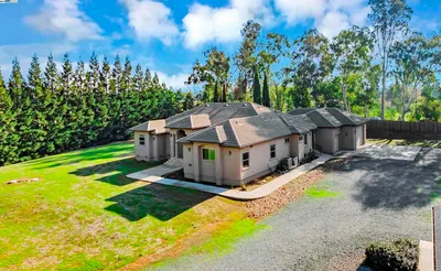 Step into the lifestyle you’ve been dreaming of with this stunning modern ranchette—where space, style, and serenity come together on over 5.7 breathtaking acres. From the moment you arrive, this beautifully designed single-story home welcomes you with soaring vaulted ceilings, sleek vinyl flooring, and abundant natural light, creating a warm yet sophisticated ambiance. Thoughtfully designed layout with separate living and family room, perfect for everyday living and entertaining. The recently updated kitchen is ideal for both casual dining and hosting, with views overlooking the serene backyard oasis and private pond. The primary suite is a true retreat, featuring direct backyard access, a spacious walk-in closet, and a beautifully updated bathroom. All five bedrooms are filled with natural light, private exterior access for each room, enhancing the connection to the surrounding landscape. Outside the possibilities are endless - whether you envision a pool, sports court, gardens,boating in the pond, Jacuzi or a potential ADU. Water and electricity available through out the property, Spacious 3 car garage, Fully fenced, Owned Solar, Privacy plantation. This is more than a home—it’s a private retreat and an exceptional opportunity to create your ideal lifestyle.