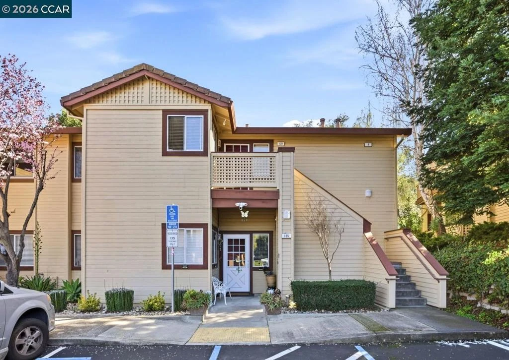 Beautiful move-in ready 3 BR/2 BA, desirable upstairs end-unit in the secluded Bravo community--nestled in the tranquil hills of Hercules. Bright with lots of natural light streaming in. Enjoy a long, spacious balcony with access from both the living rm and primary bedrm. Enjoy entertaining on the balcony or relaxing on a chaise lounge. Kitchen has granite counters and new stainless steel microwave & stove. Refrigerator can stay. Primary bedroom en suite includes dual sinks, soaking tub & balcony access. Two additional bedrooms are good size and enjoy natural light. In-unit laundry closet fits full-size washer & dryer which are included. Balcony storage closet & detached one-car garage. A community pool & clubhouse are available for your enjoyment during the warm months. HOA includes water, trash & exterior maint. Close to elementary, middle & high schools, parks, walking trails, shopping & public transportation. Come see this gem!