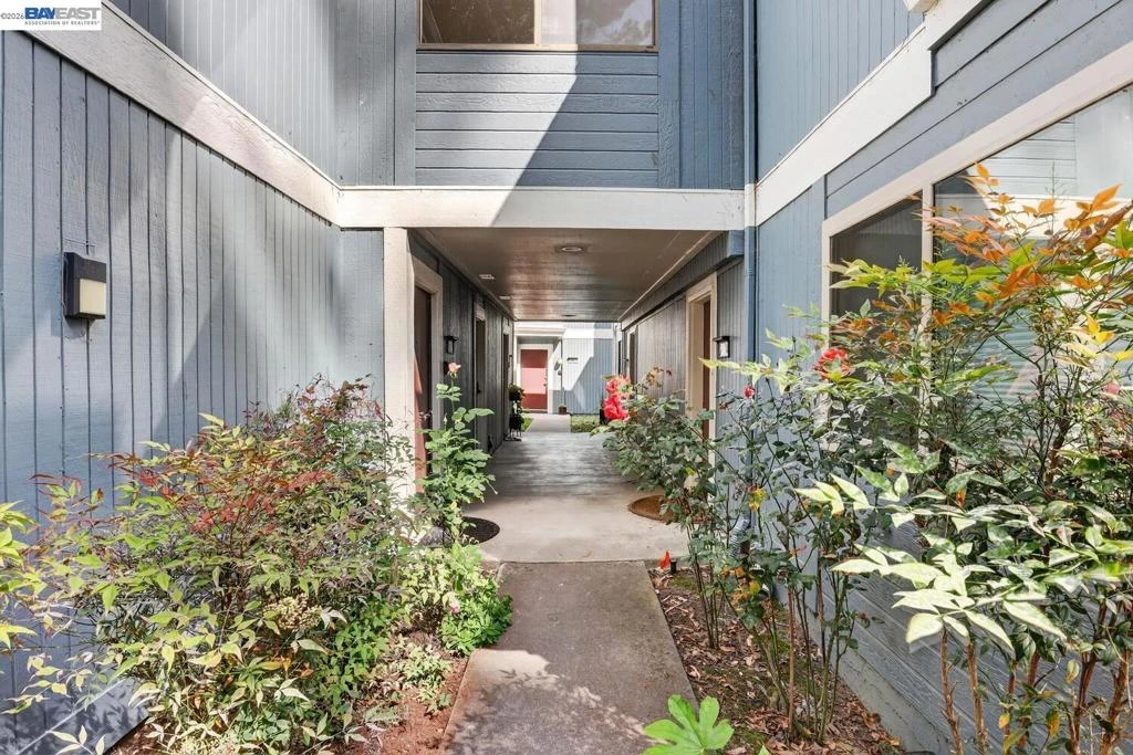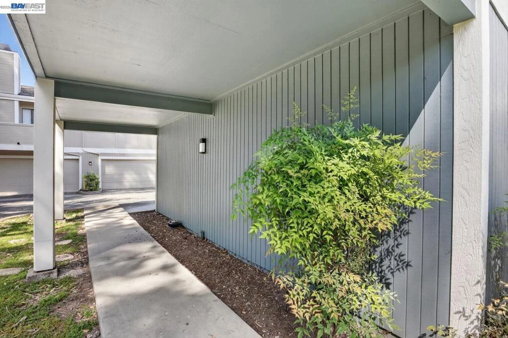 Come see this move-in ready condo with a bright open floor plan, vaulted ceilings and abundant natural light. The main living area is inviting with a cozy, gas fireplace, fresh interior paint, and newly installed carpeting. The updated kitchen boasts stainless steel appliances, white shaker cabinetry, granite counters and matching granite backsplash perfect for everyday cooking or entertaining. The primary suite includes a half bath, ample closet space, and mirrored closet doors while the second bedroom is open and naturally bright. New carpeting has been installed in both bedrooms. The renovated full bath features granite counters, designer vanity, and a tiled tub/shower surrounding. Stylish, designer plantation shutters and shades are found throughout the home. Central heating and cooling systems are controlled by a nest thermostat. The corner location adds privacy, while the in-unit laundry and 2-car garage provide convenience and storage. Centrally located, this unit is steps away from peaceful trails and community pools/spa/tennis courts. The popular San Francisco Bay trail, local shopping plazas and major roads/I-80/highway 4 are just a minutes' drive. Come see for yourself at our open house this Easter weekend from 2-4pm both Saturday and Sunday.