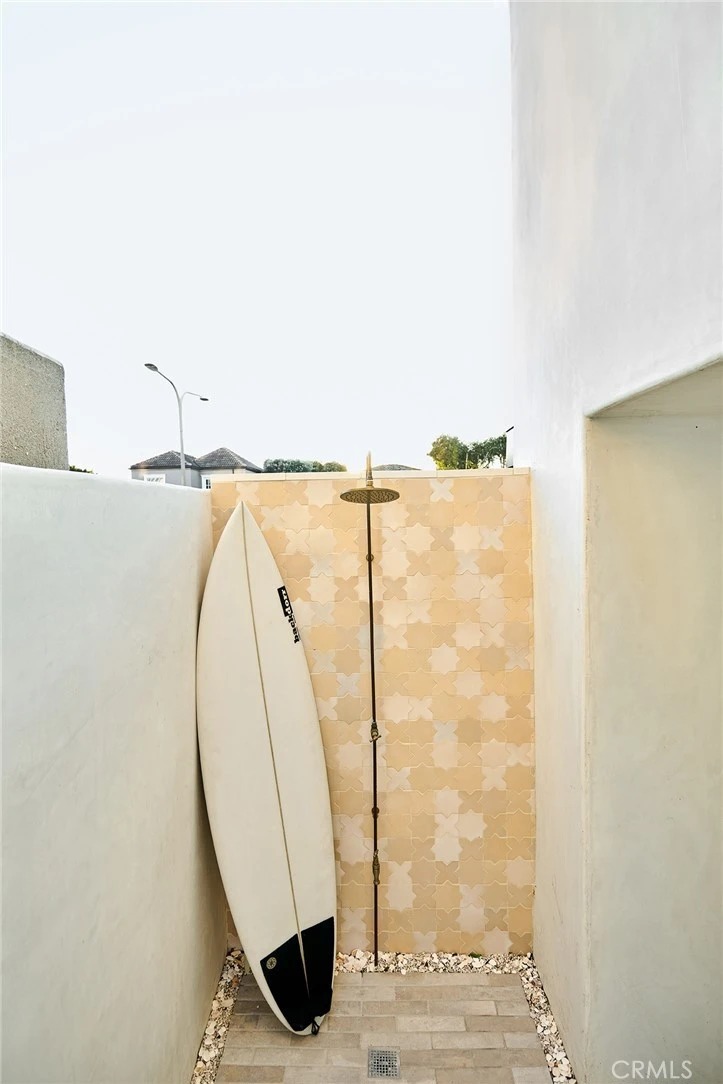Set on an oversized lot in one of North Hermosa Beach’s most coveted coastal locations, this extraordinary residence offers panoramic ocean views made possible by a rare, grandfathered height advantage that exceeds current building limitations. Sweeping vistas span the Manhattan, Hermosa, and Redondo Beach piers and are enjoyed from multiple levels, creating a constant visual connection to the Pacific. Taken down to the studs and reconstructed by Icaza Construction, the home blends modern building standards with timeless, European-inspired design. Wide-plank 12-inch European white oak floors, fluted solid oak custom doors, and vintage brass iron detailing introduce warmth and character throughout. The heart of the home is the chef’s kitchen, where ocean views frame an oversized island designed for gathering and entertaining. High-end Thermador appliances, dual dishwashers, iron-accented cabinetry, a sculptural stucco hood, and thoughtfully selected countertops create a space that is both refined and functional. The kitchen opens seamlessly to the main living area, anchored by a striking fireplace, and flows naturally into a formal dining space framed by reclaimed wood, ideal for both everyday living and entertaining. A separate family room and bar area on the main level further enhances the home’s livability. The bar features custom white oak cabinetry, marble countertops, two beverage refrigerators, antique smoked mirrors, a copper sink, ample storage, and custom built-ins with dual televisions, perfect for relaxed evenings or hosting guests. With six bedrooms and five bathrooms, the layout offers exceptional flexibility. Four bedrooms are located on the lower level, along with an additional room ideal for a private office. The panoramic ocean-view primary suite occupies the top level and serves as a true retreat, complete with a spa-like marble bathroom featuring a dramatic walk-in shower and breathtaking views. Multiple outdoor spaces including a 700-square-foot rooftop deck with jacuzzi, front courtyard, and private patios extend the living experience outdoors. Additional highlights include a copper outdoor shower, epoxy-finished garage, metal roof, underground utilities, and extensive AV and security systems. Backed by a 10-year builder warranty, this is a rare opportunity to own a coastal residence that balances architectural detail, elevated design, and panoramic views just steps from the beach, the Strand, and the vibrant North Hermosa lifestyle.