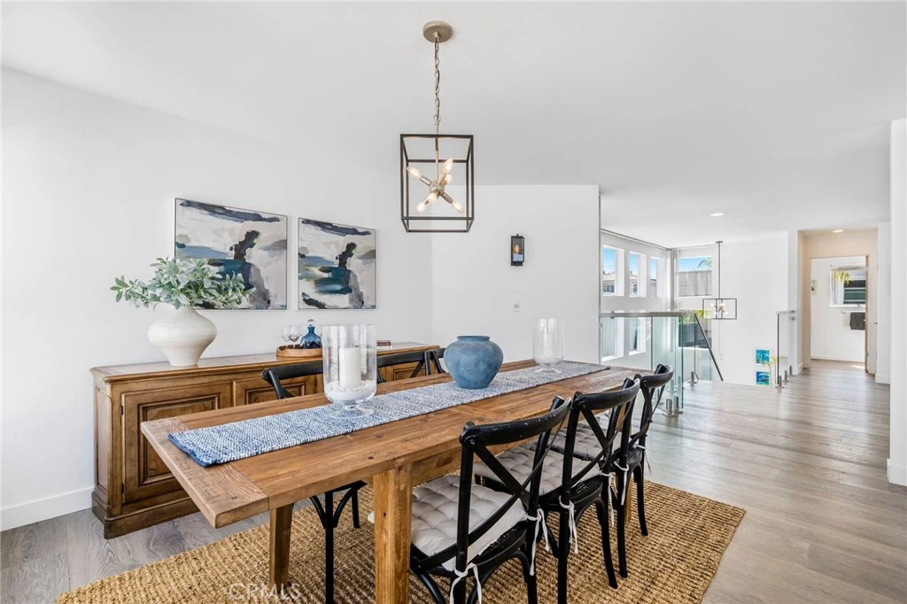 Experience the best of South Hermosa Beach living in this beautifully positioned detached townhome that lives like a single-family home, offering ocean views, abundant natural light, and the relaxed charm of one of the area’s most beloved neighborhoods. Located west of PCH just a few blocks from the beach, the Greenbelt, and South Park, this home captures that rare small-town coastal feel while keeping you connected to everything the South Bay has to offer, including nearby neighborhood cafés, shops, and the vibrant Hermosa Beach lifestyle. Spanning approximately 2,160 square feet, the home features a thoughtfully designed layout that maximizes both views and livability. The upper-level common areas are ideally positioned to capture ocean vistas from every main living space, with expansive windows that flood the home with sunlight and create a bright, airy atmosphere throughout. The updated kitchen is both stylish and functional, appointed with JennAir appliances, Bosch dishwasher, quartzite countertops, and an open layout ideal for cooking, gathering, and entertaining. Wood floors add warmth and sophistication, while the open-concept living areas invite you to relax, host, and enjoy the coastal setting. All three bedrooms are located on the main level, each with balcony access, creating a peaceful retreat separate from the entertaining spaces above. At the end of the day, unwind to the sound of waves crashing from your bed and enjoy the everyday luxury of beachside living. The lower level adds exceptional functionality with a mudd room, laundry room, tool storage, and a rare four-car garage—an incredible amenity at the Beach. There is a shared guest parking space in the driveway. Owner upgrades include New kitchen and appliances, 10' kitchen island, custom lighting, glass railings, coffee bar, Quartz gas fireplace, EV Charger, new water heater and Hardwood flooring throughout. Located within the Hermosa Beach School District. Start living the beach life today.