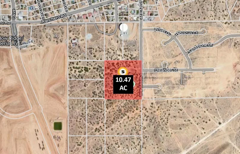 10.47 Acres of Prime City-Edge Land – Build, Subdivide & Grow in Hesperia, CA! APN: 0397-012-08-0000 | Near Paisley Ave & Ranchero Rd, Hesperia, CA 92345 Seize this rare opportunity to own 10.47 acres of vacant residential land right in the heart of the thriving City of Hesperia! This blank-canvas parcel offers the perfect blend of wide-open high-desert freedom and convenient city access—ideal for your custom dream home, family compound, equestrian setup, or savvy investor play with subdivision potential. Zoned residential within Hesperia city limits, the property supports single-family living with room for ADUs, guest houses, or possible minor lot splits (buyer to verify exact entitlements with City Planning). Imagine panoramic desert and mountain vistas, star-filled skies, and endless possibilities on this gently rolling terrain while enjoying proximity to I-15, shopping, schools, and everyday amenities in one of Southern California’s fastest-growing high-desert communities. Hesperia Unified School District serves the area, and the location provides easy commutes to Victorville, Apple Valley, the Inland Empire, and beyond. Whether you’re looking to build immediately, hold for appreciation, or develop, this parcel delivers exceptional value in a market hungry for spacious, buildable acreage. Highlights: -Expansive 10.47 acres (over 456,000 sq ft) of usable high-desert land -City of Hesperia zoning with flexible residential & potential development upside -Prime location near paved roads and growing infrastructure -Stunning desert/mountain views and true privacy -Excellent investment or owner-builder opportunity in a strong-growth corridor Don’t miss your chance to secure substantial land in Hesperia before prices climb further! Perfect for homesteaders, developers, or anyone ready to escape the ordinary and create something extraordinary in one of the region’s most desirable high-desert cities. Priced to move—serious inquiries welcome. Contact us today for maps, more photos/drone footage, or to arrange a private showing. Buyer to verify all details including zoning, utilities availability, access, buildability, and environmental factors with the City of Hesperia and professionals of their choice.