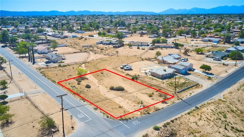 Corner lot with peek view of the river. Utilities at property, buyer to investigate with the city for permitted building. Hesperia will be the location for a train station that will offer service to Rancho Cucamonga. Per the City of Hesperia Public Works there is a 50' drainage easement through the property. Engineering is reviewing the buildable space.