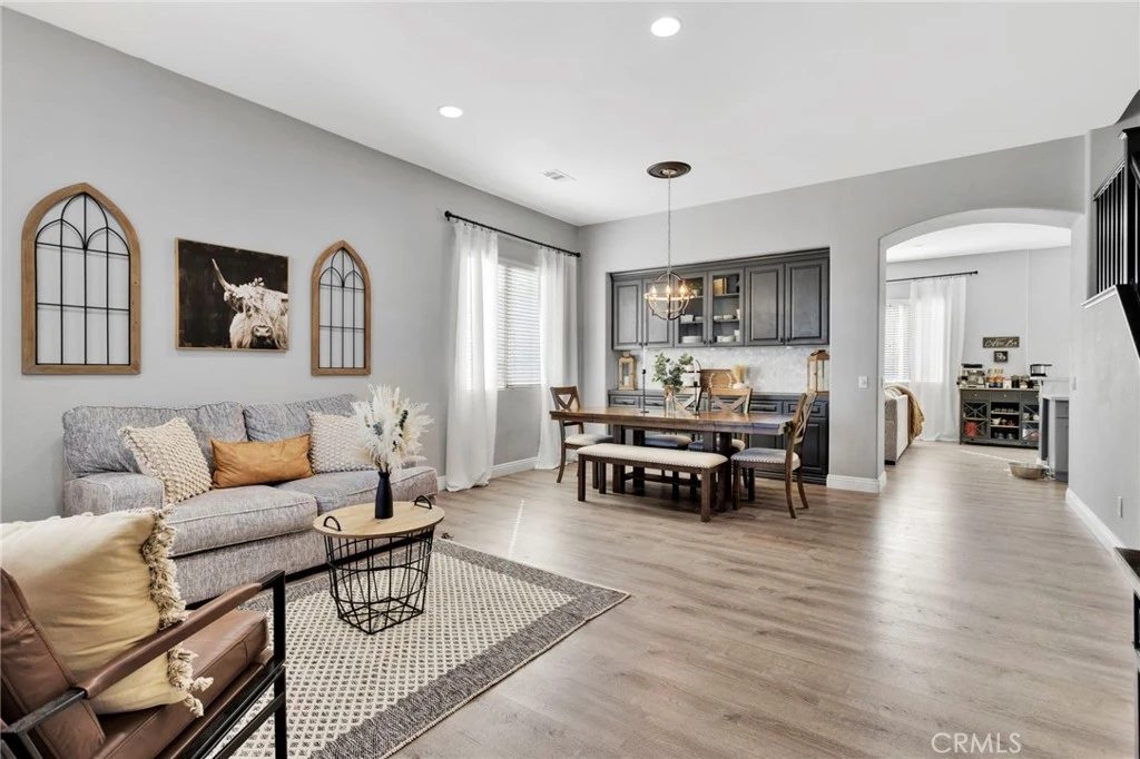 Beautiful 3,317 sq. ft. home featuring 5 bedrooms, 4 bathrooms, and a spacious 3-car garage. The light and bright open floorplan offers generous living areas, neutral finishes, and modern upgrades throughout. The main level includes an inviting dining space with custom built-ins, a comfortable family room, and a well-appointed kitchen with ample storage and seamless access to the backyard. The desirable floorplan features the primary suite downstairs for privacy and convenience, complete with an en-suite bath and walk-in closet. Upstairs you’ll find four additional bedrooms along with a large loft/bonus room complete with a built-in bar area—ideal for entertaining, media, or additional living space. Outdoor living is enhanced by a covered back patio, perfect for year-round enjoyment and gatherings. Additional highlights include the 3-car garage for parking and storage and a solar system for improved energy efficiency and reduced utility costs. Situated in a desirable, commuter-friendly community, this move-in ready home offers the perfect blend of space, function, and modern convenience.