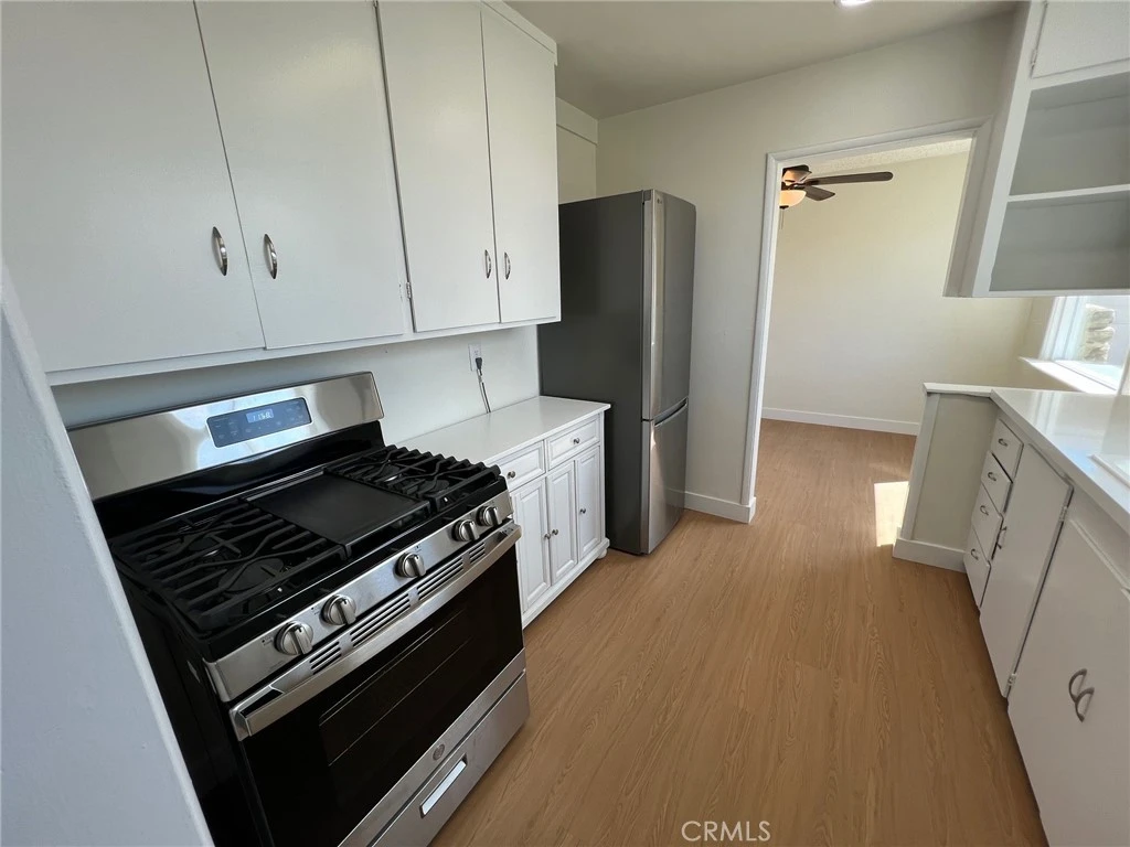 If you’ve been looking for a place that feels like home the minute you pull up—and gives you room to grow—this is it. Sitting on a massive 60,000 sq. ft. lot, this freshly updated single-story, three bedroom and one bath home offers space, comfort, and real opportunity for the future. Whether you're thinking about adding an ADU, building a workshop, starting a garden, or just having room for your tools, trucks, and toys—this property gives you the freedom to make it happen. You’re welcomed in by two large pine trees that provide great shade and a warm, inviting front porch—perfect for relaxing after a long day’s work. Step inside to a wide open floor plan with a spacious living room with LED recessed lighting, a beautiful picture window that brings in tons of natural light, and durable vinyl plank flooring built to handle everyday life. The layout flows into a roomy dining area with a ceiling fan and windows on both sides, making it bright and comfortable for family meals. The kitchen has been nicely updated with quartz countertops, a clean white sink, new faucet, LED lighting, and a full set of brand-new stainless steel GE appliances—including a 5-burner range and refrigerator—ready for real down home cooking. And a beautiful view out the back kitchen windows of the massive backyard. There’s also a true indoor laundry room with brand-new GE washer and dryer, plus extra utility space to keep things organized and practical. The home features three solid-sized bedrooms (one at 10x10 and two at 10x13), all with ceiling fans, along with a refreshed bathroom that includes updated fixtures, a shower over tub, and built-in storage. You’ll also notice the little upgrades throughout—extra-large baseboards, fresh interior paint, and new windows that help with comfort and efficiency. Outside is where this property really stands apart. The detached garage is oversized, with a new roll-up door, a separate man door, built-in storage, and even a new window—ideal for a workspace or future projects. The backyard is huge—flat and truly usable land—with mature shade trees on all sides, succulents, a kids’ swing set and slide, and endless room to expand. The Septic system was just recently COMPLETELY redone and emptied. This is the kind of property where you can start with a solid home and build something more over time—whether that’s extra income, extra space, or just a better life for your family. Simple. Practical. Full of possibilities and growth opportunities.