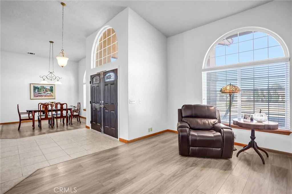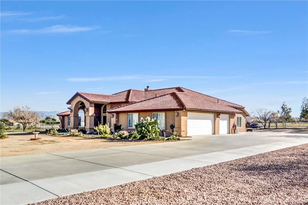 Welcome to this spacious and beautifully maintained home located in Hesperia. Offering 4 bedrooms, plus one bonus room, 2 full bathrooms, and an additional half bath, this 3,125 sq ft residence sits on an expansive 1.77 Acre lot, (77,101 sq ft) providing endless possibilities. Step inside to discover high ceilings and an open, airy layout that creates an inviting atmosphere throughout. The spacious primary bedroom offers a comfortable retreat, featuring a cozy fireplace, generous square footage, and an en-suite bathroom with a sunken soaking tub, dual vanity, and a large walk-in closet for ample storage. The large kitchen is a standout feature, complete with a beautiful center island, ample cabinetry, and generous counter space—perfect for hosting and everyday living. The bonus room adds flexibility for a home office, game room, gym, or guest space. The home is well cared for with durable laminate and tile flooring, a home security system, and thoughtful upgrades throughout. Outside, the expansive yard is designed for entertainment, featuring built-in outdoor lighting providing a beautiful outdoor ambiance with auto turned on at dusk. Wide-open space, and plenty of room for RVs, boats, semi-truck with tractor trailer parking, and all your recreational toys, secured by two private electric gates. Conveniently located near major shopping, dining, schools, and offers easy access to the I-15 freeway. This property combines space, comfort, and an unbeatable location—ready to welcome you home.