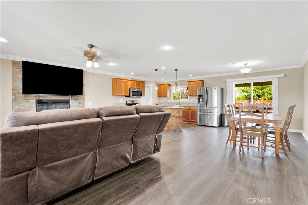 Welcome to this move in ready 3 bedroom, 2 bathroom home offering comfortable living, an open concept layout, and beautiful mountain and desert views. The spacious living area features a cozy fireplace, creating a warm and inviting atmosphere. Unwind in your above ground spa, conveniently located just outside the master bedroom doors, perfect for relaxing in the evenings. The kitchen has granite countertops, ample cabinetry, and seamless flow into the dining and living areas. Enjoy the convenience of an indoor laundry area for added functionality. Step outside and you’ll find even more to love, including an oversized 3 car garage providing plenty of space for vehicles, toys, storage, or a workshop. This property is also equipped with two RV dump stations and 220 Electric for two RVs, perfect for those needing extra parking flexibility. Additional features include three storage sheds, offering plenty of extra space for tools, hobbies, or outdoor equipment. With its thoughtful layout, desirable upgrades, and unique features, this home offers the perfect blend of comfort, convenience, and versatility. Conveniently located with easy freeway access and close to top rated local schools.