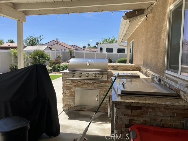 *****Professional Photography to come soon!!!***** Pool home on nearly 1/2 acre of land. Newer construction home in immaculate condition, upgraded like a model home. Previous owners invested over $200,000 in upgrades, including: custom designed pool and spa, front, back, and side drought resistant landscaping and hardscaping, exterior brick work, complete outdoor, covered patio with full built-in kitchen, custom three-car garage doors, total exterior security farm-style fence and fencing between front and backyard, and RV parking with separate entrance. Additionally, the interior has a custom built in dry bar with wine refrigerator, fireplace, and has ADA compatible accessibility. ****Current loan is assumable at 2.75% for potential massive monthly savings.****