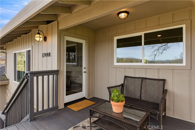 Discover the perfect blend of comfort and tranquility in this well-situated Ranch-style home tucked away on a peaceful cul-de-sac with beautiful lake and mountain views. Offering 3 bedrooms and 2 bathrooms, the home welcomes you with a tiled entryway that leads into a spacious kitchen and dining area, flowing naturally into the step-down living room—creating an inviting space for everyday living and gathering with friends and family. New central heating and air conditioning provide comfort throughout the seasons. Step outside to a welcoming covered front porch and a rear deck—ideal for entertaining or simply relaxing while enjoying the peaceful surroundings. The deep lot borders undeveloped acreage, offering additional privacy and space for outdoor enjoyment, along with the added serenity of a lovely lake view. Additional features include a spacious deep two-car garage with ample storage, 360° extended eaves, and convenient access to the equestrian easement behind the property. The home also offers new windows, a newer HVAC system, and engineered hardwood flooring in the living area. The kitchen features a newer solid-surface countertop, while the hallways and bedrooms are finished with premium stain-resistant carpet. The landscaped yard includes thoughtfully designed areas for relaxation, and the grooved driveway adds extra convenience during harsher weather. Located in a gated golf community, this home is just moments from Hidden Valley Lake and its swimming pools, the new Greenview Bar & Restaurant, local wineries, and Twin Pine Casino—an ideal setting to enjoy all the area has to offer.