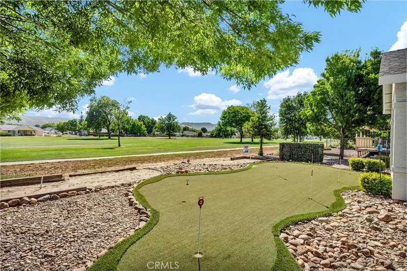 HUGE REDUCTION!! PRICED TO SELL! Situated on the 3rd Fairway at Hidden Valley Lake's Championship Golf Course, this 3 bed / 2 bath single level home offers 1,807 SF of spacious living space. Beautiful stucco home with new exterior paint and low maintenance landscaping will catch your eye from the road. Large level driveway with plenty of room for parking + a 3 car garage for your vehicles, golf cart or storage! The tiled entry leads to the spacious living room with vaulted ceilings and new vinyl plank flooring. Stately propane fireplace with brick hearth is a nice focal point in the space. The kitchen is open to the living room with a center island, tiled countertops and loads of storage cabinetry. Dine at the breakfast bar, dining nook or formal dining room off the entry. Desirable separation floorplan with 2 guest bedrooms & bathroom on one end with primary and full laundry room with utility sink on the other. Access the back patio from the living room or the primary bedroom. The views from the covered patio of lush green grass year round with surrounding hills in the distance will never get old! Up for some competition? A custom 9 hole putting green with fringe for chipping or the built-in horseshoe pit provides endless outdoor entertainment! The primary bedroom has plush carpet, a ceiling fan and an ensuite bathroom with large walk-in closet + built-ins, new vinyl plank flooring, large walk-in shower, soaking tub and dual sink vanity. This well maintained home shows pride of ownership, add it to your list today!