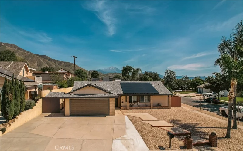 PAID-OFF TESLA SOLAR + BATTERY — NO ELECTRIC BILLS! Welcome to this spacious and versatile 5-bedroom, 4-bathroom home nestled near the scenic Highland foothills. Designed for comfort and functionality, this property offers central A/C, four full bathrooms, and a rare five-bedroom layout—perfect for large households or multi-generational living. Step inside to a generous living room that flows into an open-concept chef’s kitchen, complete with ample space for dual refrigerators—ideal for entertaining or everyday convenience. The home features not one, but two primary suites, each with its own private bathroom. Outside, enjoy a large backyard filled with mature citrus trees, a storage shed, and pre-leveled concrete ready for a future patio or expansion. The expansive driveway accommodates up to six vehicles with ease. With fully paid-off Tesla solar and battery storage, you’ll benefit from energy efficiency and little to no electricity costs. Don’t miss this rare opportunity to own one of the few 5-bedroom homes in the area—combining space, functionality, and long-term savings.
