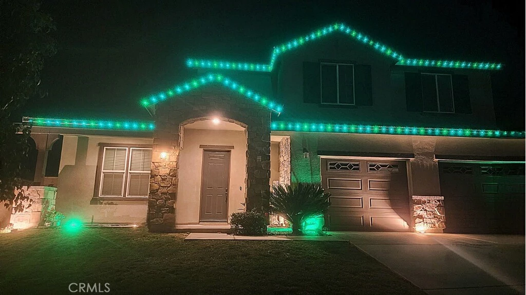 Welcome to this beautifully maintained 2019-built residence offering over 3,100 square feet of thoughtfully designed living space in the highly desirable East Highland community with NO HOA. Situated on one of the largest lots in the neighborhood (approximately .28 acres / 12,000+ sq ft), this 4-bedroom, 3.5-bath home offers space, flexibility, and scenic surroundings. The open-concept layout is spacious and filled with natural light. Select interior areas have been refreshed with new paint and new carpet, enhancing the home’s move-in-ready presentation. The modern kitchen features quartz countertops, stainless steel appliances, a large center island, walk-in pantry, and abundant cabinetry, flowing seamlessly into the dining area and inviting family room with a cozy gas fireplace. A private first-floor bedroom with en-suite bath provides ideal flexibility for guests or multi-generational living. The den with custom barn doors offers versatile use as an office, media room, fitness space, or potential fifth bedroom. Upstairs, a generous loft captures beautiful mountain views. The expansive primary suite features an oversized walk-in closet and a well-appointed bath with dual sinks, soaking tub, separate shower, and dedicated vanity area. Two additional bedrooms share a Jack-and-Jill bathroom, and convenient upstairs laundry enhances everyday functionality. The oversized backyard offers a rare scale within East Highland. With ample room to design a pool, expand entertaining areas, or explore ADU potential (subject to local guidelines and buyer verification), this property presents an exceptional opportunity while maintaining open outdoor enjoyment. Enjoy mountain, rolling-hill, and sunset views from the covered patio with a ceiling fan and extended concrete and paver areas. Additional highlights include a 3-car tandem garage for extra storage, leased solar panels (buyer to verify terms), tankless water heater, upgraded media/internet hub, recessed lighting, ceiling fans, and professionally installed Everlights — customizable, permanent, app-controlled exterior lighting. Located within the Redlands Unified School District and conveniently near shopping, dining, and commuter routes, this East Highland home combines size, views, versatility, and modern comfort — all without HOA restrictions. Set your appointment now!