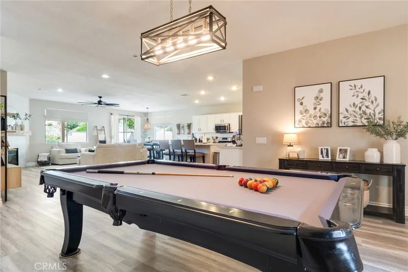 Welcome to this beautifully upgraded single-story home in the desirable neighborhood of Highland, offering 4 bedrooms and 2.5 bathrooms on a spacious, private lot with scenic hillside views. This turnkey residence features an open-concept layout with high ceilings, plank flooring, recessed lighting, and a cozy fireplace anchoring the main living space. The upgraded kitchen showcases white shaker cabinetry, quartz countertops, subway tile backsplash, stainless steel appliances, a large center island, walk-in pantry, and a dedicated coffee bar, all flowing seamlessly into the dining area with direct backyard access—perfect for entertaining. The spacious primary suite offers vaulted ceilings and a spa-inspired en suite bath complete with a freestanding soaking tub, dual vanities, and a custom glass walk-in shower. Three additional bedrooms provide flexibility for family, guests, or home office space, complemented by updated secondary bathrooms. Enjoy indoor laundry, an attached three-car tandem garage, and thoughtful modern finishes throughout. Step outside to a beautifully landscaped backyard oasis with an expansive lawn, terraced greenery, covered patio, and multiple seating areas ideal for relaxing or hosting gatherings. With stunning curb appeal, stylish upgrades, and a functional single-story design, this home offers the perfect blend of comfort, elegance, and California indoor-outdoor living.