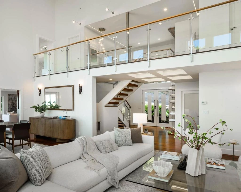 Commanding sweeping views of San Francisco, the Bay Bridge, and a glittering skyline, 1340 View Haven is a contemporary Hillsborough retreat designed to showcase its extraordinary vantage point. A private tree lined setting, the home unfolds through a dramatic double-height foyer with a glass-encased staircase and suspended artistic wine display. The house unfolds to expansive, light-filled living areas framed by walls of glass blurring the line between indoors and out. A sleek, European-style kitchen is anchored by a sculptural quartz island and premium appliancesseamlessly flows into dining and family areas, all opening to view terraces designed for elevated entertaining. The house has five bedrooms with a stunning primary bedroom retreat with panoramic outlooks, private balcony, fireplace, and spa-like bath. Outside, a view-facing pool and spa, fire pit, and heated terraces create a space for year round enjoyment. Recent structural enhancements include retrofitting to the deck, foundation, and retaining walls, reinforcing both integrity and longevity.