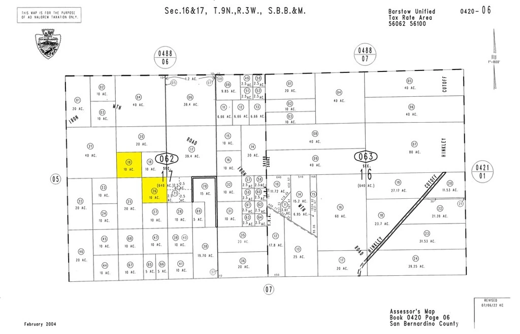 Two contiguous 10-acre parcels totaling 20 acres located near Iron Mountain Rd in Hinkley, offering wide-open desert landscapes and endless potential. Zoned RL-5 (Residential Low Density), allowing for single-family homes and compatible uses, this property provides flexibility for future development, investment, or a private retreat. No utilities are currently on site, buyer to verify availability and development requirements. Enjoy expansive views, peaceful surroundings, and easy access to nearby roads while still maintaining privacy. Great opportunity to own a large acreage in a growing High Desert area at an attractive price. ****No soils reports, surveys, etc., have been done. Buyer and buyer's agent to verify all information with the city or county for allowable uses and requirements and rely on their own investigations. **Buyer responsible for checking zoning, utilities, permits and exact property boundaries. ****