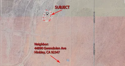 5 Acres in Hinkley, CA for $12,000. This property is in the unincorporated area of the San Bernardino County. Not too far from Kramer Road. APN 0492-041-34-0000. Latitude 34.973766 Longitude -117.407594 This property does not have an address assigned. "5 Acres Redhill Road" is for listing purposes only.