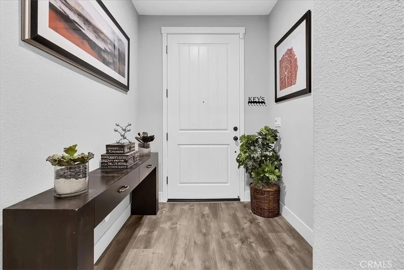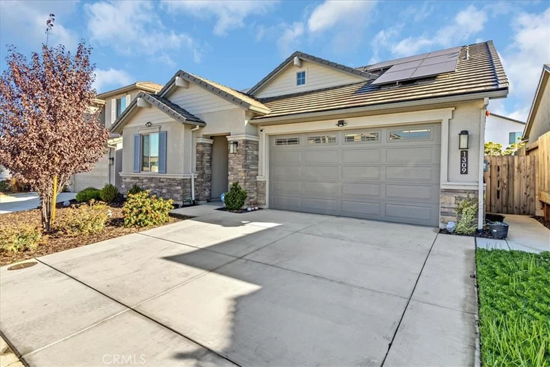 This completely upgraded single-story home offers modern style, thoughtful design, and an entertainer’s dream backyard. The open-concept living area features a spacious great room with abundant natural light, LVP flooring, and a seamless flow into the gourmet kitchen. The kitchen boasts white shaker cabinets, sleek quartz countertops, stainless steel appliances, a subway tile backsplash, and an oversized island with bar seating—perfect for hosting and everyday living. Just off the side of the kitchen, you'll find a dedicated laundry room offering added convenience, extra storage, and easy access without disrupting the home's main living spaces. The luxurious primary suite includes a spa-inspired bathroom with a relaxing soaking tub, a spacious walk-in shower, and walk-in closet. Two additional bedrooms provide comfort and flexibility, ideal for family, guests, or a home office. Step outside to your newly designed backyard oasis, complete with a full-length patio awning, roll-down privacy shades, low-maintenance turf, and an impressive outdoor kitchen setup, offering multiple built-in stainless steel appliances and extensive counter space. Whether relaxing or entertaining, this space is built to enjoy year-round. Additional features include upgraded lighting, custom window treatments, ample storage, and a clean, modern aesthetic throughout. Move-in ready and truly turnkey—this home combines comfort, luxury, and convenience in every detail. *Solar panels are leased, 12 panels* @ $97.73 per month