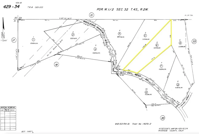 Discover the potential of this exceptional 5.25-acre estate view lot nestled within the prestigious gated community of The Ranches at Sky Mesa. This rare offering is ideal for builders, contractors, or investors seeking privacy, natural beauty, and high-end development potential. Perched at approximately 2,700+ feet in elevation, the north-facing parcel boasts breathtaking, unobstructed views of snow-capped mountains, Lake Perris, Phantom Lake, rolling hills, and dramatic sunsets. The natural terrain features striking rock outcroppings—ideal for designing custom waterfalls, sparkling pools, and serene ponds to create a true resort-style oasis. This exclusive community features million-dollar custom homes, underground utilities, and excellent 24/7 gated security enhanced by high-tech surveillance cameras. Each parcel maintains a minimum of five acres and allows up to four horses, with mobile homes prohibited to preserve the estate-quality aesthetic. Homes must be a minimum of 2,800 square feet with at least a three-car garage, ensuring architectural consistency and luxury throughout the neighborhood. A site plan has already been prepared for this lot, offering a head start on your dream home or investment project. Utilities include district water, electric, and phone lines located in the paved street, and the property is in a propane and septic area. The lot has clearly marked corners and is accessible through gated entry points north off Nuevo Road and south off Juniper Flats Road. There's ample space for additional structures such as patios, garages, horse facilities, walking trails, or other outdoor amenities. Conveniently located near I-215, Highway 74, and the Ramona Expressway, this property offers easy access to shopping, schools, medical centers, parks, and regional airports. It sits between Perris and Diamond Valley Lakes and is just 20 miles from Lake Elsinore—Southern California’s largest freshwater lake—offering year-round opportunities for fishing, boating, water sports, and more. Centrally located for commuting to Riverside, San Diego, Orange, Los Angeles, and San Bernardino Counties. As a bonus, financing may be available (OMC) with as little as 15% down, making this an outstanding opportunity for qualified buyers and investors. Don't miss the chance to secure this stunning view lot in one of Southern California’s premier private communities. Call today—must see to appreciate!