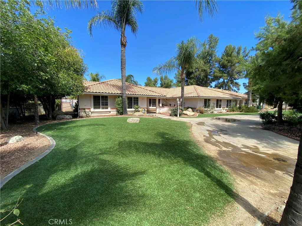 This amazing single story home is a 4 bedroom, 4 bath with a bonus room, living room that has a custom fire place, a family room, Den, kitchen, laundry room with so much more to describe. In the back yard you will find an oasis of your own, with an outside patio, a saltwater pool, waterfall, above ground Jacuzzi, garden area, turf-grass area, flowers, plants & trees. Then you will find a large private ADU 1 bedroom /1 full bathroom, kitchen, the ADU has a connecting fully covered porch/patio. The property has another outside room that can be used for an extra room or a storage attached to the 2 garage. In addition to the middle of the property you have plenty of open space for horses, hobbies, toys, the property does have horse stalls, horse wash area, livestock pens, all this sitting on less than 2 acres. The property has a large front U driveway, a long side driveway with a 4 car carport, RV PARKING, Campers, boats there is so much room to be creative. and this side driveway connects front to the back of the property. The property does have a leased SOLAR system…The home is ready to custom tailor to your family’s desires. This is a great opportunity for any family....
