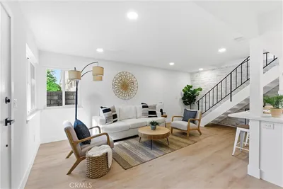Are you looking for a condo that feels like a new custom home? If so, this is the property for you! 16395 Del Oro Circle is a completely renovated 2 story condominium boasting 837 square feet of living space space spread out over an extremely well thought out and functional floorpan that features 2 large bedrooms with spacious closets and ceiling fans, a gorgeously remodeled bathroom complete with a tub and shower, , a brand new open galley style kitchen with new white shaker cabinetry, quartz counter tops, gorgeous backsplash, brand new stainless steel appliances, a pantry, and a breakfast bar that opens up into the living area. Just off of the kitchen there is a dining area, a spacious living room, and a gorgeous staircase with a whitewashed brick accent wall. One of the things that make this unit very unique and special is the in-home laundry closet complete with a brand new washer and dryer. (This is a HUGE upgrade as most units in this community do not have in-unit laundry and use the coin operated machines in the various community laundry rooms). Throughout the home you will find wide plank flooring, smooth ceilings (no popcorn), freshly painted walls, ceilings, and doors, and an abundance of new energy efficient dual pane vinyl windows. In addition, the home comes with shared access of a private 2 car garage, and access to all of the amazing community ammenities such as a gorgeous swimming pool, clubhouse, sports courts (basketball and volleyball) expansive greenbelts, RV/trailer/boat parking area, sand volleyball, and tons of guest parking. In terms terms of location, it doesn't get any better than this! This home is located in the highly sought after Harbor Heights Villas community, just minutes from Huntington Harbor, Sunset Beach, Bolsa Chica Wetlands, shopping, dining, entertainment, trails, and award winning schools.