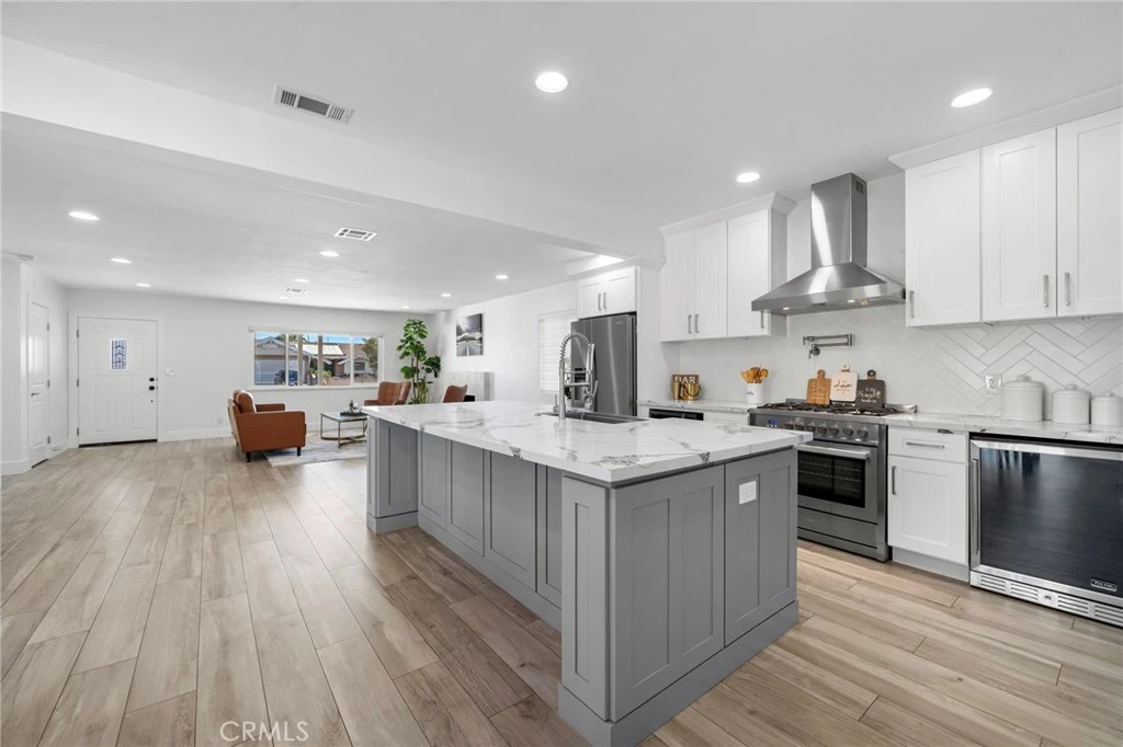 Step into this beautifully reimagined coastal retreat, where modern design meets effortless comfort. Spanning approximately 2,000 square feet, this thoughtfully renovated home offers a highly desirable dual primary suite layout and showcases quality craftsmanship throughout. From the moment you enter, you’ll notice the fresh, top-to-bottom upgrades and airy open-concept floor plan—perfect for both everyday living and entertaining. The light-filled living room flows seamlessly into the dining area and a stunning, fully redesigned kitchen. Featuring white shaker cabinetry with soft-close drawers, a generous center island, quartz countertops with a marble-inspired finish, subway tile backsplash, stainless steel appliances, a farmhouse sink, wall-mounted pot filler, and a spacious walk-in pantry, this kitchen is truly the heart of the home. Wide-plank wood-look tile flooring and recessed lighting carry throughout, creating a bright and cohesive feel in every room. The main level includes a primary suite, two additional generously sized bedrooms, two beautifully updated bathrooms, and a direct-access three-car garage with an expansive driveway. Upstairs, you’ll find a private second primary suite offering a luxurious en suite bathroom complete with oversized porcelain tile flooring, a soaking tub, a walk-in shower with rainfall showerhead, designer tile surrounds, and a large walk-in closet. Additional upgrades include a brand-new central HVAC system and a solar-ready electrical panel. Ideally situated just minutes from the coast, with convenient access to the 405 freeway, Bella Terra, Pacific City, Huntington Central Park, and a variety of dining and entertainment options.