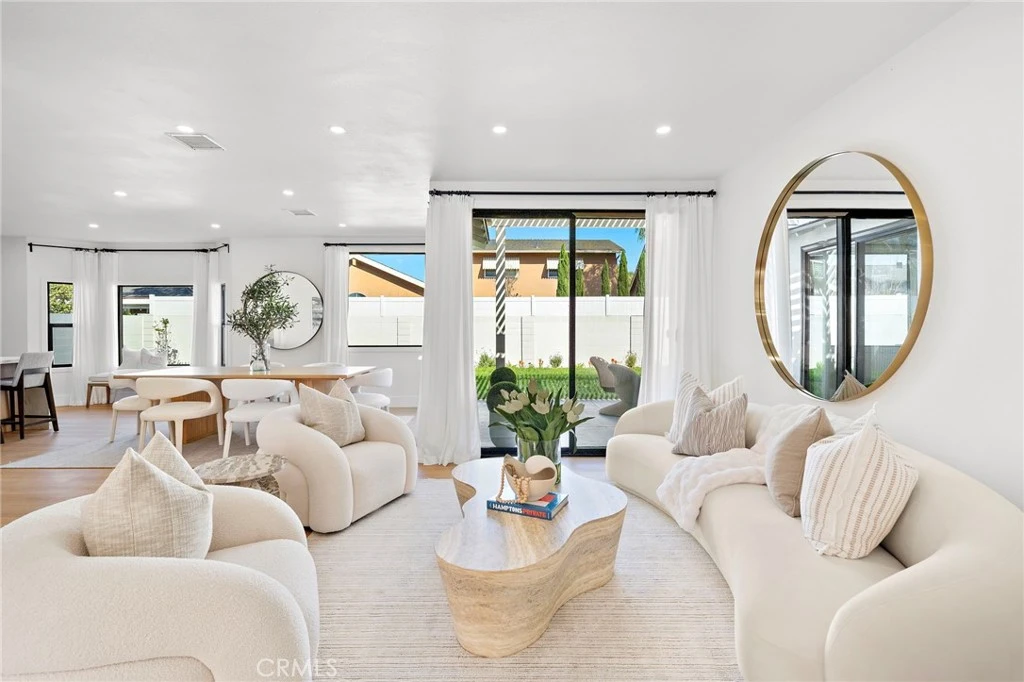 This Crisp Contemporary California Classic home has been beautifully remodeled and upgraded throughout! As you enter the massive private gated courtyard you are immediately impressed by the tranquil ambiance this home has to offer. Exceptional open concept living space affords the ultimate in relaxed elevated living. Rich white oak premium LVF plank flooring flows seamlessly throughout the residence. The kitchen is an absolute showstopper with a massive center island with waterfall edge detailing. Sleek Malaysian Calcutta Veneta Quartz counter tops allow for ample counter space. The rich modern cabinetry is custom built with soft close features. High end appliances including Sub Zero Refrigerator, Thor restaurant grade range and Bosch dishwasher. Full quartz backsplash with pot filler and beverage cooler completes the space. The primary suite is conveniently located downstairs and has a large walk-in closet with built in storage. The primary bath is spa like in design and offers a lovely soaking tub, walk in shower with designer selected tile and dual vanity and sink areas. Opulent sconce lighting and designer selected fixtures and fittings. The downstairs office is ample in size and can be utilized as a bedroom. If the buyer would like the seller will install a custom closet for the buyer. Upstairs you will find two additional generously sized bedrooms and another fully remodeled bath. The rear grounds of the property offer another large patio area and lush rolling lawns for you relaxation and entertainment needs. There are new black frame double pane windows and sliders and new window coverings. The roof is brand new and comes with a full warranty. There is a new electrical panel, new furnace, new water heater and new air conditioning unit. All work was done to code and fully permitted by the City of Huntington Beach. Come and enjoy all that Huntington Beach Coastal living has to offer in this truly turnkey home!