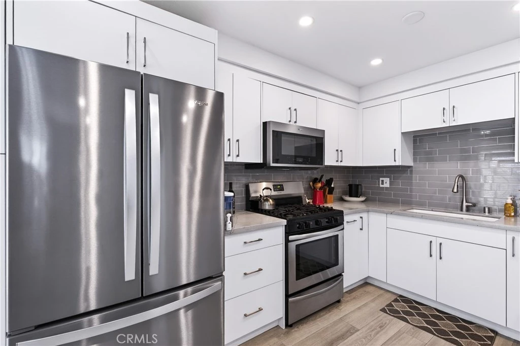 Welcome to this beautifully upgraded 3-bedroom, 1.5-bath townhome located in the desirable Tamarack Village community. This well-maintained home features a remodeled kitchen with sleek white cabinetry, stainless steel appliances, and recessed lighting that enhances the kitchen, dining area, and living room with a bright, modern feel. Upstairs, all three bedrooms offer privacy and comfort, including one with its own private balcony. The upstairs bathroom and primary bedroom have been remodeled as part of the home’s improvements. Additional upgrades include newer windows and sliding doors throughout, along with the added convenience of an electric vehicle charger. The spacious private patio creates an ideal indoor-outdoor living space for relaxing or entertaining. Interior improvements also include painted ceilings, stair hand railing, kitchen, living room, and bathroom areas completed during prior renovation work. Residents enjoy access to a community pool and a pet-friendly environment with no weight or size restrictions. Conveniently located near Lambert Park and Fulton Park, with shopping and dining nearby at Old World Village/OC Circle (approx. 2 miles) and Bella Terra (approx. 3 miles). Easy freeway access and just a short drive to the beach make this home an excellent opportunity for comfortable coastal-adjacent living.