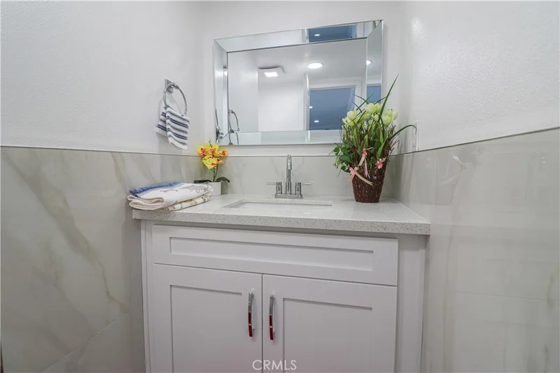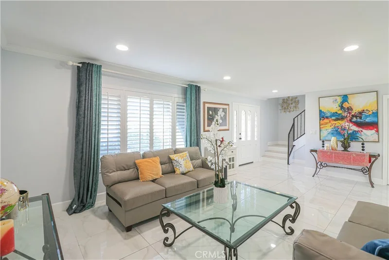 Beautifully remodeled two-story home in a corner lot which offers abundant natural light, plus attached ADU with separate entrance, located in a nice, desirable neighborhood with cool ocean breezes in the City of Huntington Beach where’s just minutes from the beaches, shops, dining, Arts Center, famous Surf City USA, Huntington Beach Pier where you can enjoy seeing a stunning sunset in the sky, bright-shining moon, or full of twinkle little stars in certain nights… Many interesting activities and attractions as well as events such as spectacular Air Show, 4th of July fantastic fireworks over the ocean… are also found in Huntington Beach. Front home features 4 bedrooms, 2 full bathrooms, 1/2 bath, dining area with cozy fireplace that flows to the kitchen with a multi-storage island, quartz countertops, custom backsplash, stainless steel appliances, single bowl kitchen sink as well as an attached two-car garage with epoxy flooring. Back home includes 1 bedroom, 1 full bathroom, 1/2 bath, kitchen with quartz countertops, custom backsplash and stainless steel appliances. Both front home and back home feature large tile flooring downstairs, laminate floors upstairs, crown moldings, recessed lighting throughout, custom plantation shutters throughout which also adapt to many design aesthetic, 3 full bathrooms with glass shower barn door and floor-to-ceiling tiled walk-in shower which create modern feel. Ideal for multigenerational families. Good opportunity to own a home with flexible living and good income potential.