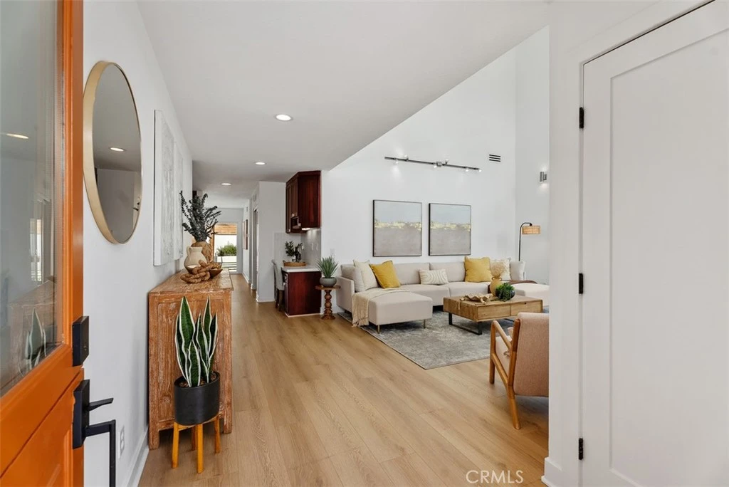 Beautifully expanded to approximately 2,001 sq ft, this exceptional Huntington Beach home features a fully permitted addition creating a private upstairs primary suite retreat with a custom walk-in closet and a spa-inspired ensuite bath with designer tile, stone countertops, and dual sinks. Thoughtfully designed by a licensed general contractor and premier builder, the home reflects quality craftsmanship and long-term functionality. The entry showcases soaring two-story ceilings, abundant natural light, and new flooring (2026). The upgraded kitchen offers quartz countertops, custom cabinetry, tile backsplash, stainless steel appliances, and recessed lighting. Downstairs includes three additional bedrooms and an updated dual-sink bathroom. Recent upgrades include new HVAC and ducting (2024), tankless water heater (2024), whole-house filtration system, repipe (2016), and newer roof. The finished garage features epoxy flooring, upgraded electrical, and a built-in laundry center. Expanded driveway accommodates 3 cars, boat, or RV. The private backyard is designed for low maintenance with turf, custom hardscape, block walls, outdoor shower, spa area, gas lines, smart lighting, and speakers. A rare opportunity where the quality of expansion, systems, and upgrades would be difficult to replicate at today’s cost.