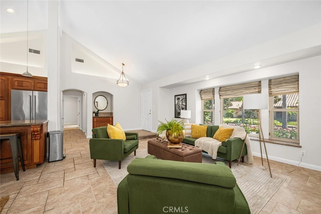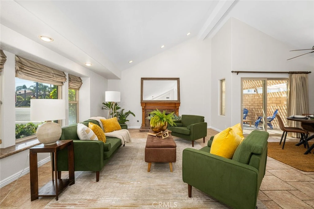 Welcome to this rare single level 2-bedroom, 2-bathroom townhome in the sought-after community of La Cuesta By The Sea. This desirable end-unit has been completely reimagined from its original design, offering a seamless blend of style and functionality. As you enter, you’re greeted by soaring vaulted ceilings and expansive tile flooring that flows throughout the Great Room. The spacious living area features a cozy gas fireplace and a beautiful bay window, creating a warm and inviting atmosphere. The kitchen is truly an entertainer’s dream, showcasing stainless steel appliances including a Thermador gas range with hood vent, double-door refrigerator, double oven, and dishwasher. Custom cherry wood cabinetry and granite countertops add both elegance and practicality, while the oversized island—complete with cabinetry on both sides—provides exceptional storage and workspace. Adjacent to the kitchen, the dining area offers a built-in buffet and sliding glass doors that open to a large backyard patio—perfect for enjoying Southern California’s year-round sunshine and indoor-outdoor living. Down the hall, you’ll find a guest bathroom with a shower and a well-appointed guest bedroom with a ceiling fan. There is also side-by-side washer/dryer in the hall closet. The primary suite has been thoughtfully redesigned to include a private patio, walk-in closet, dual vanities, and a spa-like jetted tub for ultimate relaxation. Additional highlights include an attached 2-car garage with overhead rafters for extra storage, central HVAC, and double-pane windows throughout. Residents also enjoy access to community tennis courts and the convenience of being just a short stroll to the beach. Experience coastal living at its finest in this beautifully upgraded home.