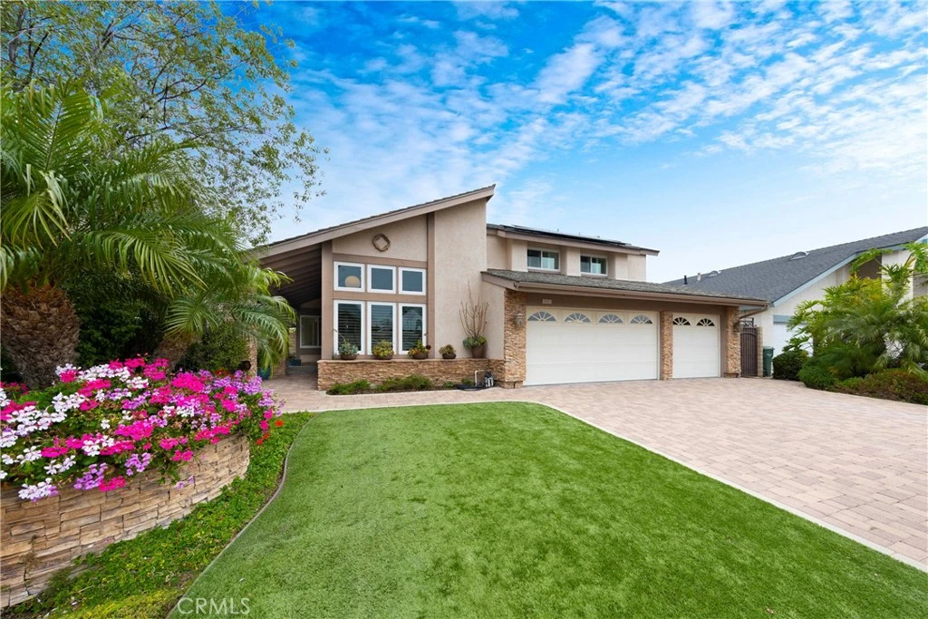 Rare opportunity to own in the desirable Park Place community! This impressive Huntington Beach location is a mile from the beach, has a lush park nearby, and is walking distance to highly regarded schools. The home is spacious with four bedrooms and three bathrooms on an oversized lot in a prime, quiet street location. The light and bright living room has multiple windows, a sky light, plantation shutters, and a vaulted ceiling. The recently remodeled kitchen features quartz countertops, stainless-steel appliances, including a new, Bosch double oven. The downstairs family room has a granite and ledger fireplace. There is an upgraded, main floor bathroom and main floor bedroom used as an office, with built-in shelves and drawers. Separate laundry room with cabinets. Large Master Bedroom with a large walk-in closet, plus a second closet. The master bathroom has a vanity and a separate Bathroom. The large, front driveway has colorful pavers, and the homefront has a Ledger Stone Façade. The private backyard is perfect for entertaining, featuring fruit trees, flowers, potted plants, and a covered patio! There is an attached three-car garage with shelves and cabinets for storage, and an extra sink. Upstairs is an attic with a pull down, staircase ladder. This home has Solar installed! Nearby is the Huntington Beach Pier, downtown Main Street shopping and restaurants, plus the popular Pacific City. Don't miss this extraordinary opportunity to live in one of the best neighborhoods in Huntington Beach, California!