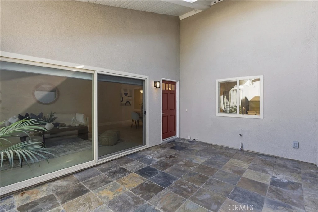 Beautifully upgraded Marina model in a quiet location close to parking. You get a sense of calm as you walk into the light filled patio where your green thumb can thrive in the lush garden. Slate flooring elevates the space ready for you to sit and sip your morning coffee. The spacious living room offers gleaming tile floors, vaulted ceilings and a large slider leading to the patio. Custom built-in buffet in the dining room is great for all your holiday dishes. Bright kitchen over looks the patio and has white cabinets, gas range, microwave and dishwasher. Remodeled bathrooms have custom vanities and upgraded tile. The primary bathroom has double sinks, and a separate shower area. A second slate patio is just through the slider. Scraped ceiling, recessed lighting and inside laundry make this a great place to spend your golden years. Huntington Landmark is a guard gated senior community offering state of the art facilities with open greenbelts and park areas great for walks or your pets, crystal blue Olympic swimming pools, spa, tennis courts and for you golfers your very own putting green, shuffle board, gym and weight room, wood working, ceramics, library, billiard room, RV storage and much more!!