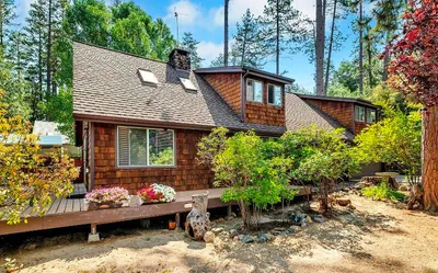 Not a rooftop in sight. 8+ Acres at the end of the road, deep in the San Jacinto mountaintops surrounded by towering pines, cedars and black oaks. Through majestic boulders, anchoring the rugged landscape, the home exemplifies dramatic architectural living, in harmony with nature. Recent renovations expanded the living space to approximately 2,100 sq. ft. The lower floor Gathering Room provides vaulted beams and wood paneled ceilings, a wall of Windows brings the outside in, opening to breathtaking views from the sprawling decks. The Gourmet Kitchen provides abundant counter space and chef quality appliances. The 2nd floor offers a comfortable Commune Area, the Primary Suite with luxurious Bath, a Second Suite and Office, each room filled with natural light, offering awe inspiring views. Exterior canopies lead to the detached 2 Car Garage. Kids paradise on the Play set nestled among Climbing Boulders. Flat usable acreage for Equestrian Development. Over a mile of trails through the property, then a quarter million acres of U.S. Forest beyond. Private well. Take the leap, live set apart!!