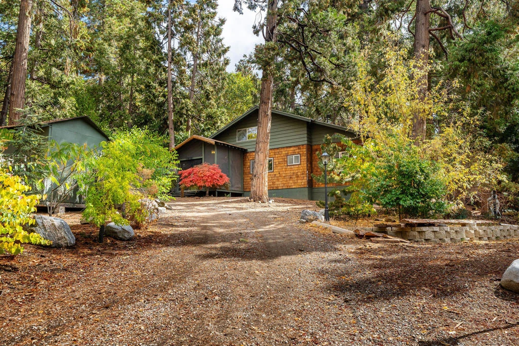 Laurel Retreat, an inviting, serene escape with plenty of rustic charm! This spacious cabin nestled against Nat'l Forestland offers a blend of privacy and adventure right from your backyard. With a circular driveway & ample parking, the cabin is set back from the street, offering both privacy and ease of access. The property is graced with specimen trees, shrubs, and fruit & nut trees keeping the landscape vibrant throughout the seasons. Zoned for horses, the property has plenty of room to accommodate equestrian needs. 4 separate storage sheds ensure secure, organized storage, and the lower-level storage room is ideal for collectibles or larger items. The backyard fence is custom built, with 'live edge' local milled wood, & provides gate access to the Nat'l Forest. The main level of the home includes 2 bed, 2 bath (1 with jacuzzi tub), a living room with a wood-burning fireplace, galley kitchen & utility room. Sliding doors open to both the side & fenced backyard areas. The upper level has 2 add'l bedrooms and an unfinished space, presenting an opportunity to add another bathroom, darkroom, etc. Custom accents of local milled 'live edge' wood, both inside and out! A great option for anyone looking to experience mountain living!