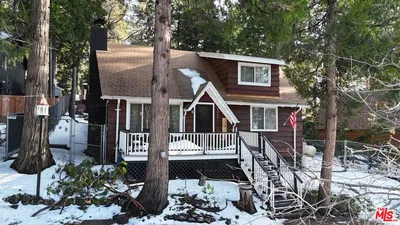 Fully furnished two-bedroom, two-bathroom home centrally located in Idyllwild. This charming mountain retreat features central heat and A/C, hardwood and tile flooring throughout, and a bright living room with high ceilings, abundant natural light, a river rock fireplace, and a pull-out sofa bed. The primary suite includes a full bathroom, while the second bedroom is located near a three-quarter hall bath. The kitchen and primary suite both provide access to a relaxing sunroom. Enjoy spacious front and back decks, a hot tub on the back deck, and a seasonal stream running through the yard with a small bridge leading to a picnic table—perfect for outdoor dining. Minimum 30-day rental. $150 cleaning fee • $500 refundable deposit • $250 refundable pet deposit (if applicable).
