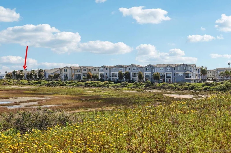 PRIME LOCATION TOWNHOME IN BAYSIDE LANDING WITH BEAUTIFUL BAY AND CITY VIEWS * STEPS AWAY FROM SILVER STRAND BIKE PATH & OPEN SPACE WILDLIFE REFUGE. Welcome to coastal living at its finest in the heart of Bayside Landing. Built in 2018 and ideally positioned near the end of the complex, this stunning two-story townhome captures views of the bay, ocean, Point Loma, and downtown San Diego right from the front of the home. Perfect as a personal residence or long-term, short-term/vacation, or executive rental (with HOA and city approval)! Inside showcases a bright, modern open-concept design highlighted by luxury vinyl flooring, granite countertops, and stainless steel Whirlpool appliances. The layout flows effortlessly, creating an inviting space perfect for everyday living and entertaining. All three spacious bedrooms are located on the second level, each offering oversized walk-in closets for exceptional storage. The upstairs also features a full-size laundry room for convenience.The spacious primary suite offers beautiful views, a large walk-in closet, and a luxurious bathroom complete with a walk-in shower, double vanity sinks, and modern finishes. Comfort and efficiency continue throughout the home with central heating and air conditioning and a tankless water heater. Additional features include a large attached two-car garage, a private gated front patio, custom cordless blackout top-down/bottom-up shades, and a Ring doorbell system. Step outside your front door and enjoy immediate access to the renowned Silver Strand Bikeway, located just feet away, offering miles of scenic biking and walking along the coastline all the way to Coronado. The beach lifestyle truly begins here, with Sand Dollar Beach and the YMCA Surf Camp only about a mile away. Residents of Bayside Landing also enjoy resort-style community amenities including a pool, spa, BBQ area, and playground. Located just blocks from the ocean and moments from the bay, this exceptional property offers the perfect combination of comfort, convenience, and coastal beauty. This is a rare opportunity to experience the very best of seaside living. All appliances convey, including washer and dryer and RING doorbell! Some photos are digitally altered and/or virtually staged.