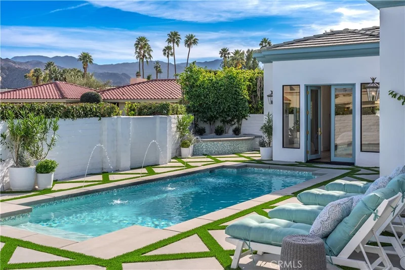 Completely Reimagined Luxury Home in the Heart of Indian Wells. This stunning 4-bedroom, 6-bathroom residence offers approximately 4,000 square feet of refined living space on an oversized 12,000 square foot lot. No detail was overlooked and major systems have been upgraded, including HVAC, pool, and professional landscaping. Designed for exceptional desert living, this private compound showcases breathtaking mountain views and seamless indoor-outdoor entertaining. At the heart of the home is an expansive great room featuring a full bar and generous entertaining area, perfect for hosting gatherings or relaxing in style. Elegant flooring and designer light fixtures elevate the modern, sophisticated interiors. The resort-style backyard boasts a sparkling quartz pool, spa, and fire pit, as well as ample space to enjoy the stunning desert surroundings. Ideally located in the heart of Indian Wells with exceptionally low HOA dues, this turnkey property is just moments from world-class golf, fine dining, and premier shopping. A rare opportunity to own a beautifully upgraded home in one of the desert’s most desirable communities.