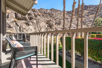 Experience refined desert living in this beautifully appointed 2 bedroom, 2 bath condo in prestigious Mountain Cove, Indian Wells. Nestled beneath the breathtaking Santa Rosa Mountains, this home offers stunning views and a serene backdrop for desert living. Offered fully furnished with exquisite Kreiss furniture, this residence combines elegance with comfort in every detail. The open concept living room, dining and kitchen spaces are filled with natural light and flow seamlessly to private patios, perfect for entertaining or everyday living. Sliding glass doors from the living room to the outdoor patio creates an incredible ambiance for indoor outdoor living and alfresco dining. The living room has a sleek TV setup, plush seating couches and a cozy fireplace creating the perfect blend of comfort and style. The dining room table can comfortably seat six and more sliding glass doors to the BBQ patio where outdoor grilling can take place. The kitchen is well equipped with a refrigerator, oven/range top, brand new dishwasher and microwave. Plenty of counter space with room for serving or barstools for casual eating. Next to the kitchen is an extra-large laundry room with a brand-new washer and dryer, overhead cabinets and room for more shelving or storage. The owner’s primary bedroom is designed as an inviting retreat with a king size bed and nightstands, a huge walk-in closet and sliding glass doors to an outdoor patio where you can enjoy your favorite morning and evening beverage. The ensuite bathroom showcases granite countertops, a custom-made vanity, expansive shower tub combo and a private water closet for ultimate privacy and comfort. The 2nd bedroom is also an inviting retreat with sliding glass doors to the patio atrium and tons of light coming through. There is ample closet space for all your clothes and shoes and access to an ensuite bathroom. The 2nd bathroom with a custom furniture vanity and a nice size walk in shower round out the interior of this amazing condo. The sophisticated furnishings and thoughtful design make this home fully turnkey and move-in ready. The patios overlook gorgeous rolling lawns and trees, and the heated community pool is just a few steps away. As a resident of Indian Wells, enjoy a 20% discount at select restaurants, spas and hotels and a discounted golf rate at the Indian Wells Country Club. The Indian Wells Tennis Garden is nearby as well as the El Paseo shopping and restaurants. ~ Welcome Home ~