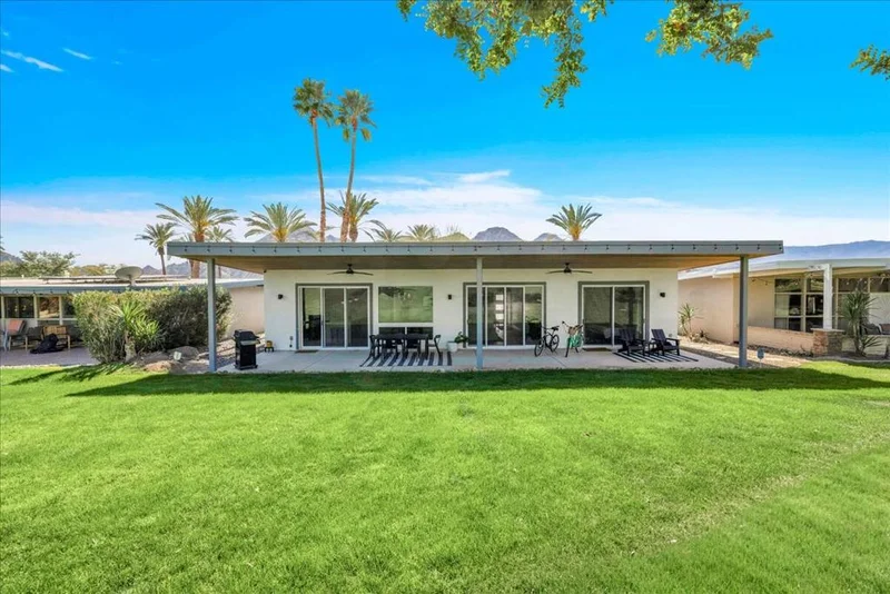 A rare offering in the coveted Indian Wells Village community, where modern luxury meets effortless desert living. This home was renovated down to the studs in 2018 creating vaulted ceilings and modernizing the construction. The 3 bedroom, 2 bath residence is offered fully furnished and has a proven track record as a successful vacation rental/second home, presenting an exceptional turnkey opportunity for both investors and those seeking a refined personal retreat.Perfectly positioned just moments from the world-famous Indian Wells Tennis Garden, this home places you at the center of premier events, dining, and recreation while maintaining a sense of privacy within an intimate enclave of only nineteen residences.Inside, walls of glass and stacking sliding doors seamlessly blend indoor and outdoor living, enhanced by automated blinds and thoughtfully curated designer finishes throughout. The open concept floor plan is both sophisticated and functional, featuring Smart Home Automation, a fully owned 19-panel solar system with Tesla Power wall, Hansgrohe kitchen and bath fixtures, designer wallpaper, and Jonathan Adler automated drapery in both the primary and guest bedrooms.Step outside to your private oasis, where a beautifully designed pool and tongue-and-groove wood patio cover create the perfect setting for relaxation or entertaining under the desert sky.Indian Wells Village stands apart as one of the few HOA communities in Indian Wells that allows short-term rentals with city restrictions, making this property especially valuable. With an OWNED SOLAR system and the low $400/month HOA fee that includes front- rear landscaping and pool maintenance allows for truly effortless ownership.This is more than a home. It is a lifestyle investment in one of the desert's most sought-after locations.
