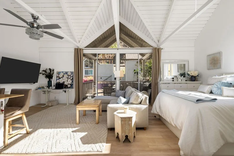 READY TO MOVE IN! Just bring your toothbrush and suitcase. Everything else is here and waiting for your arrival. Located in beautiful Indian Wells, this fully remodeled studio condominium offers refined desert living in a prestigious guard-gated community adjacent to Indian Wells Country Club. The residence features a well-appointed bathroom with a full bathtub and shower, complemented by new flooring, updated appliances, and elegant marble and quartz countertops and surrounds throughout. The community offers three swimming pools and is ideally situated against the mountain backdrop, providing a tranquil and secure setting in one of the Coachella Valley's most desirable locations.