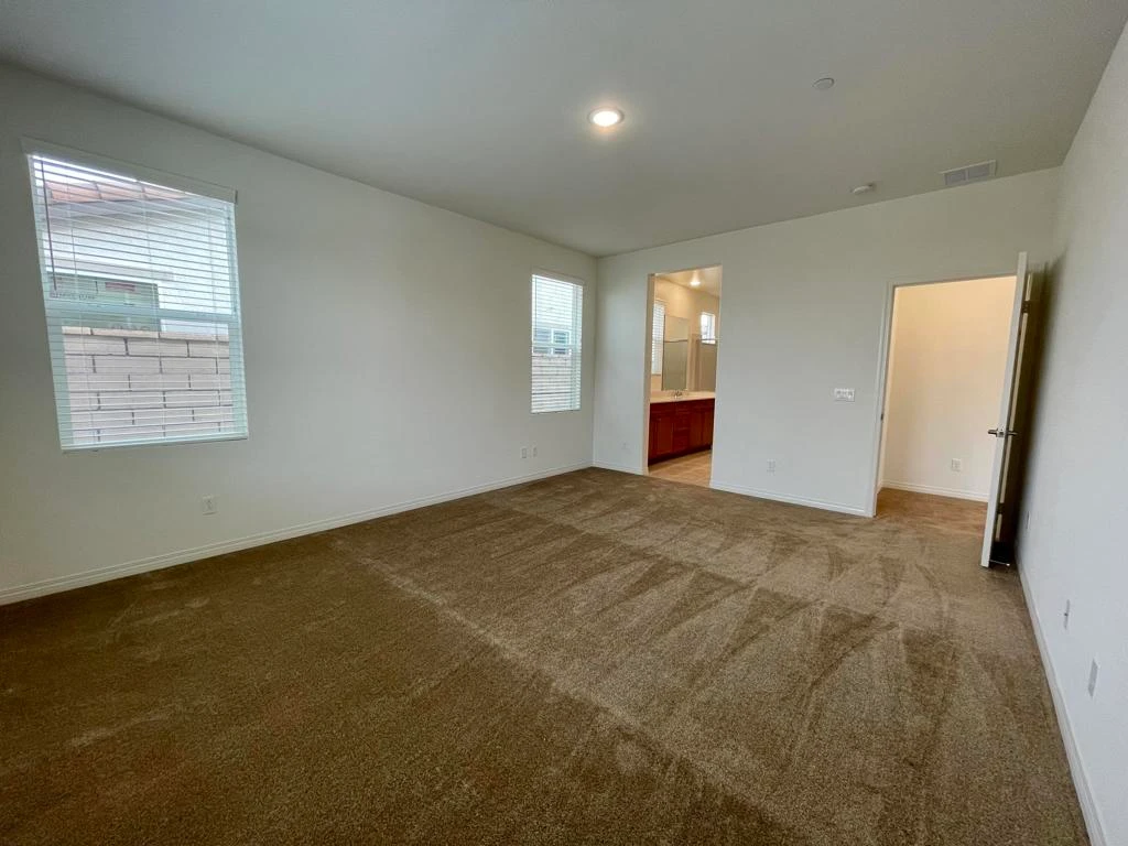 This solar panel home is located in the 55 and Better Community of Four Seasons at Terra Lago. Residents have access to amenities such as a clubhouse and fitness center. The home features tile flooring, window coverings, and carpeted bedrooms. The kitchen includes stainless-steel appliances, ample counter space, an extra-large pantry, and attractive cabinetry. The main bedroom offers a spacious bathroom with dual vanities and a large closet. Guest bedrooms and bathrooms are situated on the opposite side of the home for privacy. A third room may serve as an office. The property also includes a separate laundry room with storage cabinets and a large interior storage room for versatile use.