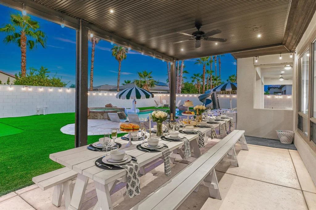 A rare opportunity to own a proven, cash flowing desert retreat with an established book of business, just moments from the Empire Polo Club.Unlike many homes currently on the market or operating in the neighborhood, this property is not speculative. It is a proven, cash flowing asset with consistent performance. The home generated over $200,000 in gross revenue last year and is on pace to exceed $250,000 this year. This is an ideal opportunity for an owner to generate income while still enjoying the home throughout the year.Located in the highly sought-after Montage at Santa Rosa and walking distance to the Coachella Valley Music and Arts Festival and Stagecoach Festival, this remodeled 7 bedroom, 4.5 bathroom home is designed for both elevated living and maximum guest appeal.The open concept interior features a spacious great room, statement fireplace, and a chef's kitchen with granite countertops, custom cabinetry, stainless steel appliances, and an oversized breakfast bar, perfect for hosting and group experiences.The backyard delivers a true resort style setting with a heated pool and spa, cascading water features, Baja shelf loungers, and expansive entertaining areas. Built to stand out in the short term rental market, the property includes a new pickleball court, putting green, bocce ball area, custom misting systems, outdoor kitchen with built in BBQ, multiple fire pits, and a fully equipped game room. Additional highlights include a private casita, home gym, EV chargers, and smart pool controls.Configured to accommodate up to 16 guests, the home is ideal for festivals, retreats, and large group stays, driving strong occupancy and repeat bookings.With close proximity to golf, dining, Acrisure Arena, Indian Wells Tennis Garden, and El Paseo, this is a turnkey, high performing asset in one of the desert's most in demand short term rental corridors. The Airbnb link, financials and booking history are available upon request.
