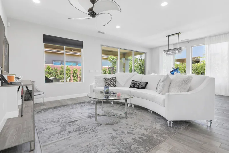 Highly upgraded, fully furnished, and equipped with solar, this turnkey residence is designed for both comfortable everyday living and effortless entertaining. Club membership is available for transfer, offering an estimated $17,000 in savings. The open-concept layout centers around a gourmet kitchen featuring high-end appliances, quartz countertops, a large quartz island, custom tile backsplash, and a built-in wine refrigerator. Expansive sliding panel doors open to the patio, creating a seamless indoor-outdoor flow. Interior highlights include an electric solar shade, a gas fireplace with tile detailing, recessed niches, upgraded recessed lighting, upgraded tile flooring, and added garage storage. A versatile den provides flexible space for media or lounging, while an additional flex area with a built-in desk functions well as a home office. The primary suite offers a private retreat with a custom walk-in closet accented by its own chandelier, a tiled walk-in shower with bench seating, dual vanities, and refined finishes throughout. The spacious laundry room is complete with a utility sink, extra cabinetry, and extended counter space. The backyard is a tranquil setting featuring a water feature, citrus trees, and a covered patio--well suited for enjoying the desert climate. An optional Polo Club membership is available for transfer, offering access to the clubhouse, state-of-the-art fitness center, resort and lap pools, tennis & pickleball courts, indoor golf simulator, dining at June Hill's Table and more. The existing membership can be transferred to the buyer for a $3,000 fee at the time of purchase (compared to the standard $20,000 initiation fee, if purchased), buyer to pay monthly club dues of $240 in addition to the monthly HOA fee of $280. This is a refined opportunity to enjoy resort-style living year-round in one of Indio's most desirable gated communities.