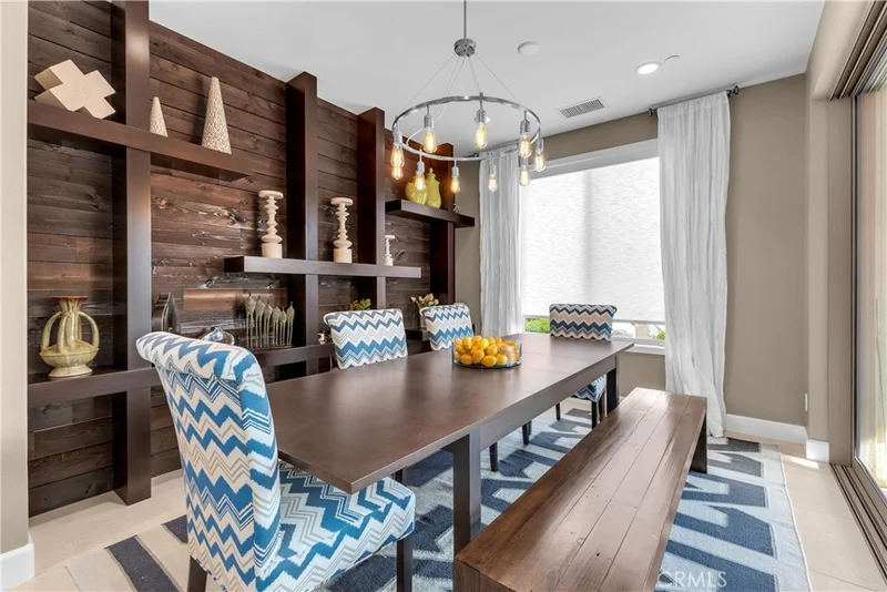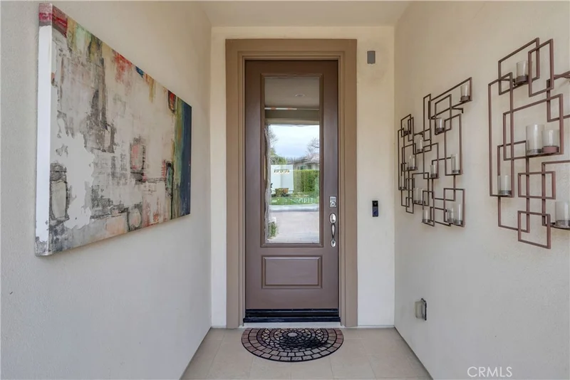 Located behind the gates in a quiet cul-de-sac within Trilogy at The Polo Club, this former FULLY FURNISHED MODEL HOME showcases thoughtful design, quality finishes, and a layout that balances open entertaining spaces with private retreats. The exterior features clean desert landscaping, stone accents, and a paver driveway that create strong curb appeal, while the covered entry opens to an interior highlighted by textured wall treatments, recessed LED lighting, and custom millwork details. Just off the entry, a dedicated office includes built in cabinetry, display shelving, and a window seat framed by twin windows, offering a comfortable and functional work from home environment. The main living area unfolds in an open concept design centered around a spacious kitchen with rich cabinetry, granite slab surfaces, a large island with seating, stainless steel appliances including double ovens, a gas cooktop with vent hood, and a glass tile backsplash that adds dimension. The kitchen flows into the dining area and great room, where expansive sliding glass doors connect to the covered patio, allowing natural light to fill the space and creating an easy indoor outdoor transition for gatherings. The great room features built in niches, and the dining area is positioned for direct patio access, supporting a natural flow for hosting. The primary suite is privately situated and designed as a relaxing retreat, featuring a curved wall of windows, custom paint tones, and an ensuite bath with dual vanities, stone counters, and a walk in shower enclosed in glass with contemporary tile work. A well appointed secondary bedroom offers privacy and custom accents, complemented by a guest bath with modern finishes. The laundry room provides additional cabinetry and counter space and functions as a versatile smart space for organization or hobbies. Outdoors, the covered patio is enhanced by a wood plank ceiling, ceiling fan, and a built in fireplace with stone surround and adjacent serving counter, creating a comfortable setting for entertaining throughout the year. The backyard is designed with gatherings in mind, offering artificial turf, mature hedging for privacy, and defined seating areas that make it easy to host friends and family. As a former model, the home reflects careful attention to detail, upgraded materials, and a cohesive design palette throughout.