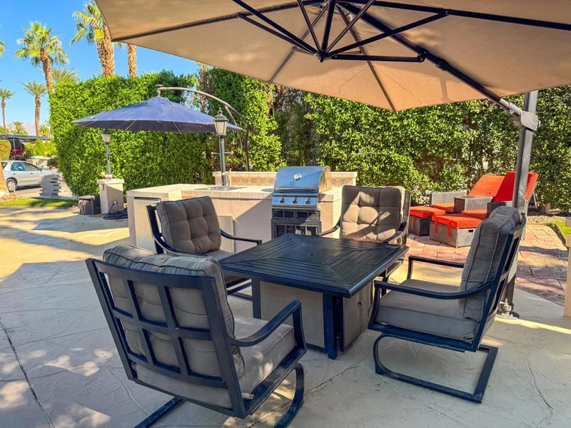 Outdoor Resort Indio is a Class A only RV Resort.This pie-shaped RV lot at Outdoor Resort Indio offers rare privacy and charm -- smaller in front, opening to a landscaped back lot with grass and a large shade tree. Your coach windshield faces north, keeping your coach cooler.Enjoy outdoor living with a tile-counter kitchen featuring a sink, built-in BBQ, hot water, and fridge. A fire table with four chairs, surfaced concrete with paver extensions, and ample parking complete the setup.Perfect for pet owners, the lot includes a large grass pet area and is just a short walk to the satellite pool, hot tub, laundry, and sauna -- everything you need for relaxed, resort-style living.