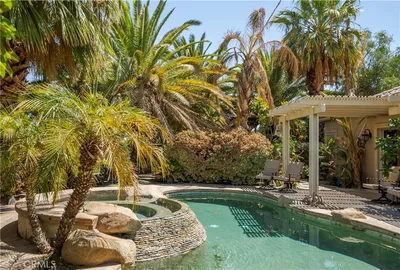 Outstanding Indian Springs golf course home! Situated at the end of a cul-de-sac and a large 10,000 sqft lot tropically landscaped backyard with PebbleTec salt system pool & spa and panaramic golf course and mountain views— ideal for entertainment & optimal relaxation. Upon entry, you will find a complete fully upgraded chef’s kitchen with double ovens, wine chiller, and walk-pantry, custom shutters throughout, a large living room with fireplace and seperate dining room area, two spacious bedrooms, and a large primary bedroom suite features a walk-in closet, and whirlpool tub. Other features include backyard exterior speakers, outside heater & mist system, an interior laundry room with ample storage, a large three car garage with epoxy flooring, two air conditioning units, and surround sound in the living room/dining room/kitchen areas. Super low HOA fees. This home is for sale fully furnished and move-in ready— perfect for your primary home, a second home for weekend gateaways, or a revenue producing vacation rental— this offering has it all!