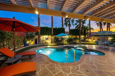 Welcome to resort-style living in Sun City Shadow Hills, one of the desert's premier 55+ active adult communities. This beautifully upgraded San Benito floor plan is being offered TURNKEY FURNISHED, making it truly move-in ready--ideal for full-time residents or seasonal living.Featuring 2 bedrooms, 2 baths, a versatile DEN, and an additional BONUS ROOM, this home provides flexible space for guests, hobbies, or a home office. The open-concept great room is filled with natural light and offers a seamless flow for both everyday living and entertaining, with a dedicated area for formal dining. The granite eat-in kitchen is both stylish and functional, perfect for casual mornings or hosting friends and family.Step outside to your private SOUTH-FACING BACKYARD retreat, where a sparkling SALTWATER POOL AND SPA invite you to relax and enjoy the sunshine year-round. Whether entertaining or unwinding, this outdoor space captures the essence of desert living.Additional highlights include a NEWER TRANE HVAC, a REMODELED PRIMARY BATH, newer STAINLESS STEEL APPLIANCES and a FULLY EQUIPPED & ORGANIZED GARAGE with room for two cars plus a golf cart--perfect for exploring the community and its exceptional amenities. A full list of upgrades is available upon request.Experience the best of active adult living with golf, fitness centers, pools, clubs, and a vibrant social scene--all just moments from your door.